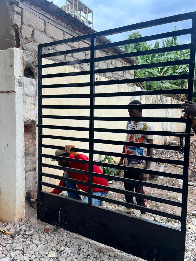 Completed main entrance gate, marking a key milestone in securing and finalizing the clinic compound.