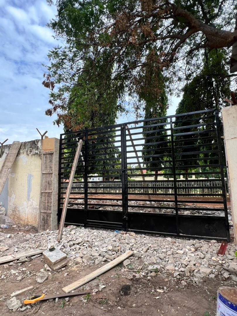 Installation of the main compound gate to improve security and controlled access to the facility.